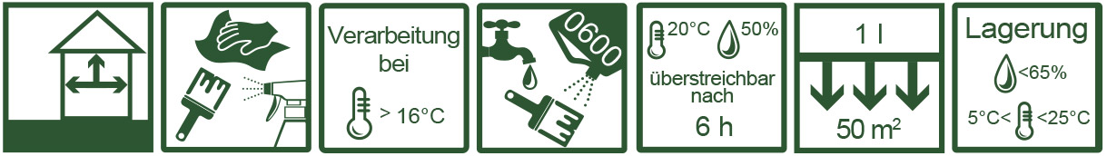 Untergründe müssen trocken (max. 12% Feuchte), saugfähig, schmutz- und fettfrei sein. Sauber abgestufter Schleifaufbau bis P180 / P240 wird empfohlen.